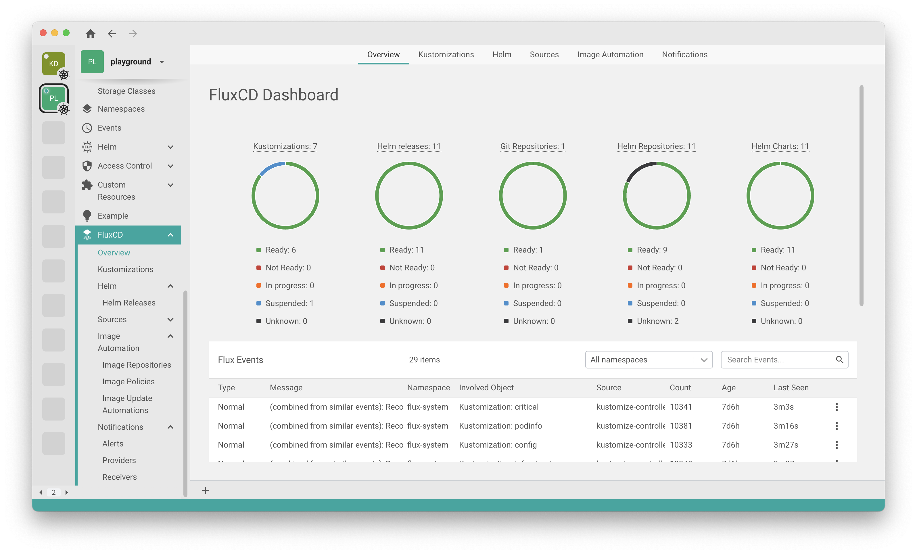 | ☸️ Flux works with any Kubernetes and all common Kubernetes tooling | Kustomize, Helm, RBAC, and policy-driven validation (OPA, Kyverno, admission controllers) so it simply falls into place. |